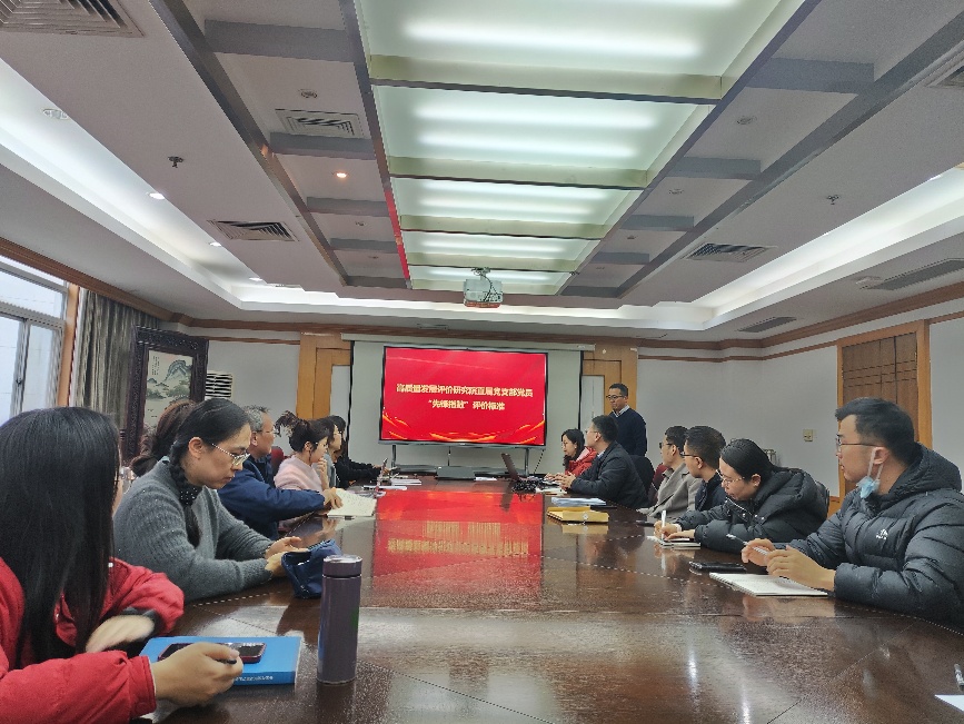 支部启动党员“先锋指数”评价工作,支部宣传委员陈芳宣读高质量发展评价研究院直属党支部党员“先锋指数”具体评分标准,激励党员比学赶超,更好发挥党员先锋模范作用,以高质量党建引领高质量发展。