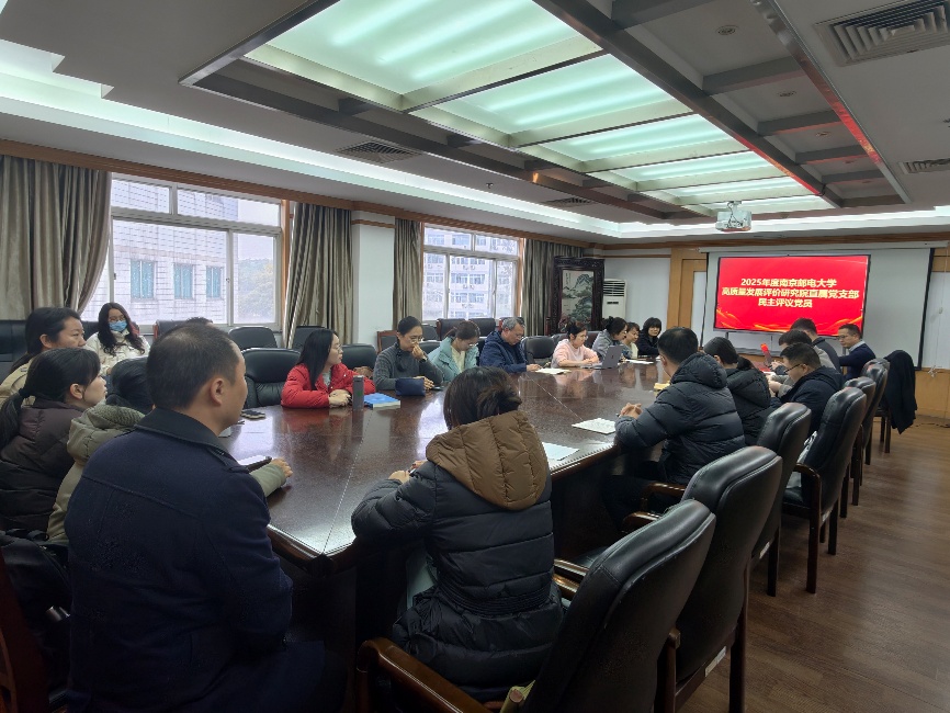 3月18日下午,高质量发展评价研究院直属党支部举行2025年度组织生活会,开展民主评议党员。支部书记刘晓峰主持,支部全体党员参加。